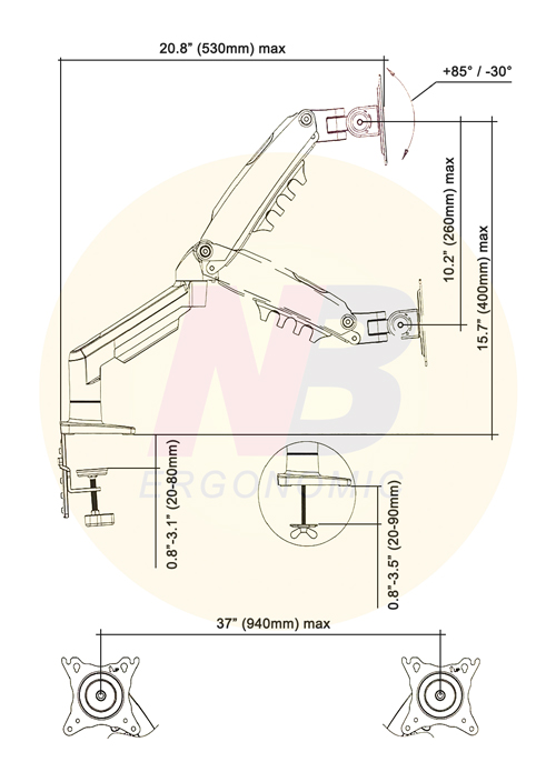 Sản phẩm chân treo hai màn hình vi tính NB P160 là một trong các thiết kế mới nhất của công ty North Bayou. Đây là phiên bản giá treo màn hình Dual Arm Monitor nâng cấp mới nhất với tải trọng lên tới 9kg cho mỗi màn hình